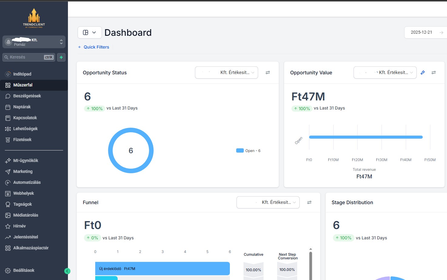 A TrendClient Consulting egy AI-alapú marketingügynökség, amely kifejezetten építőipari vállalkozások digitális fejlődésére specializálódott. Hivatásunk, hogy olyan automatizált rendszereket építsünk, amelyek nem csak láthatóvá teszik ügyfeleinket online, hanem üzleti növekedésüket is aktívan támogatják.